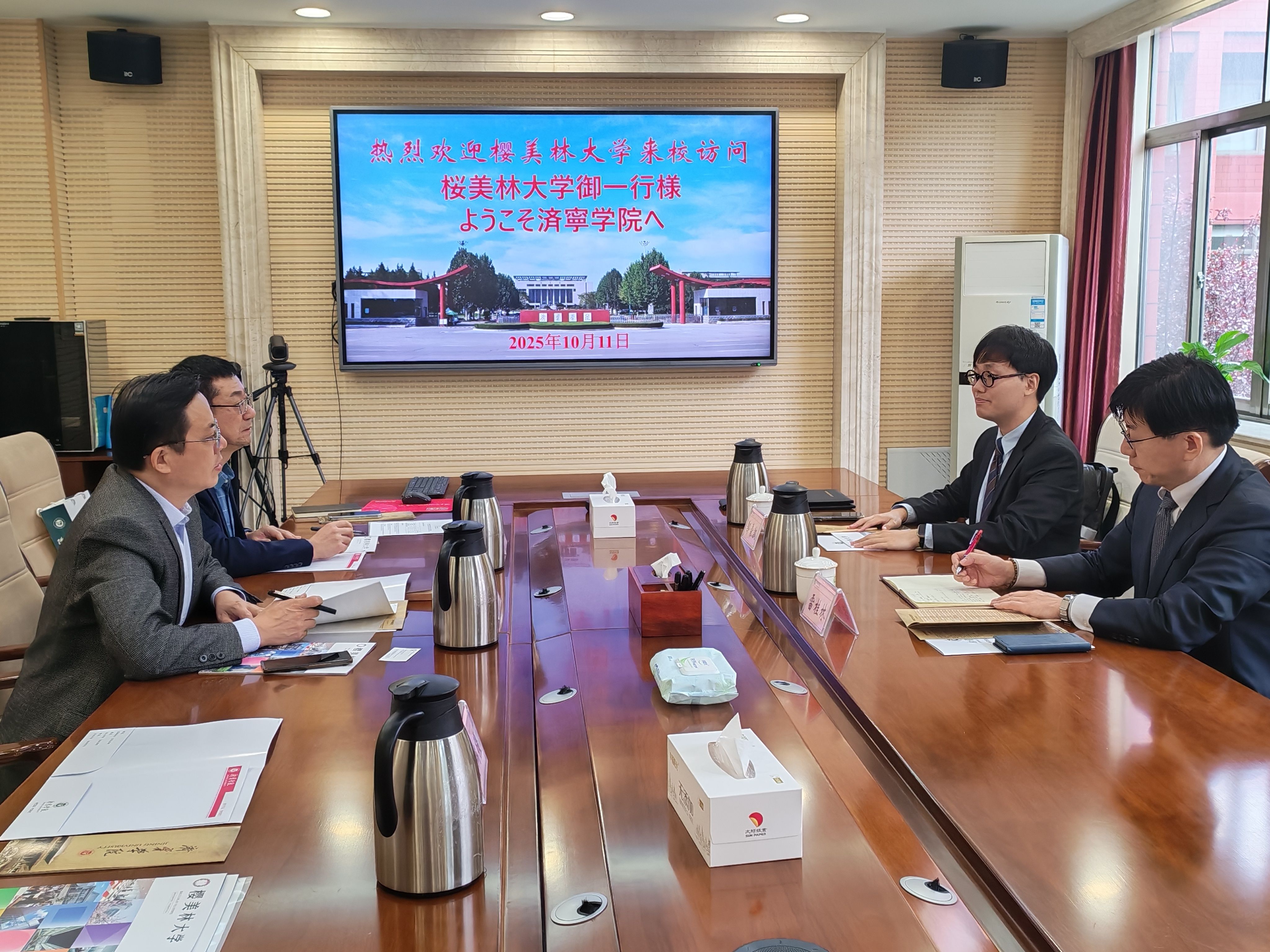 在欢迎座谈会中,李刚首先对樱美林大学代表团的到访表示热烈欢迎,并简要介绍了我校的办学历史、学科特色、人才培养以及国际化发展战略。他表示,济宁学院始终秉持开放办学的理念,高度重视与海外高水平大学的交流与合作。樱美林大学是日本享有盛誉的综合性大学,希望以此次访问为契机,开启两校合作的新征程,共同为中日两国的教育文化交流贡献力量。