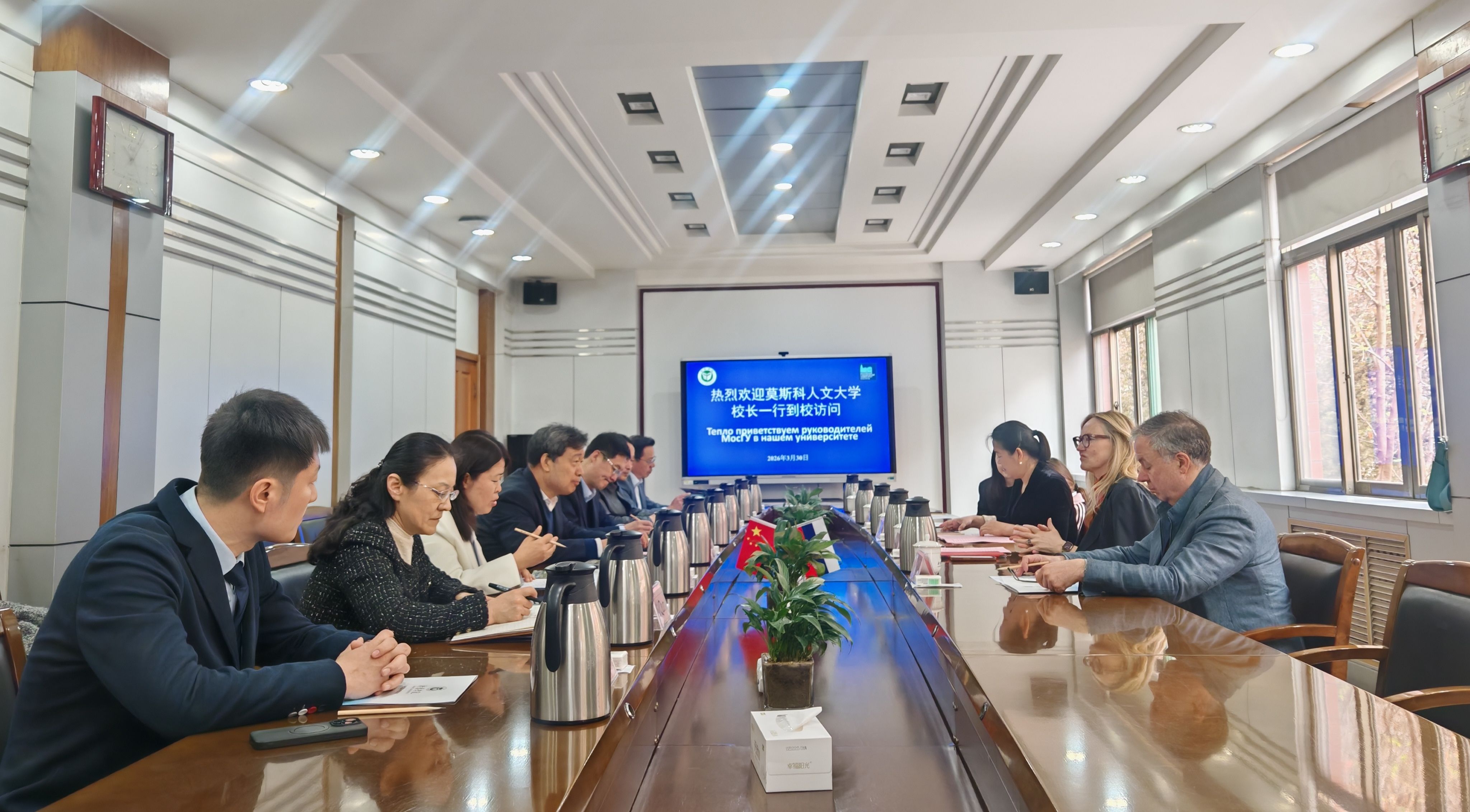 3月30日上午,莫斯科人文大学校长伊林斯卡娅·娜塔莉娅·伊戈列夫娜与俄中人文科技合作促进会会长纪进凤一行到访我校。校党委副书记、校长王清明,党委委员、副校长赵明热情接待来访嘉宾并出席座谈,经济管理学院、外国语学院、教师教育学院、国际教育学院相关负责人参加座谈。