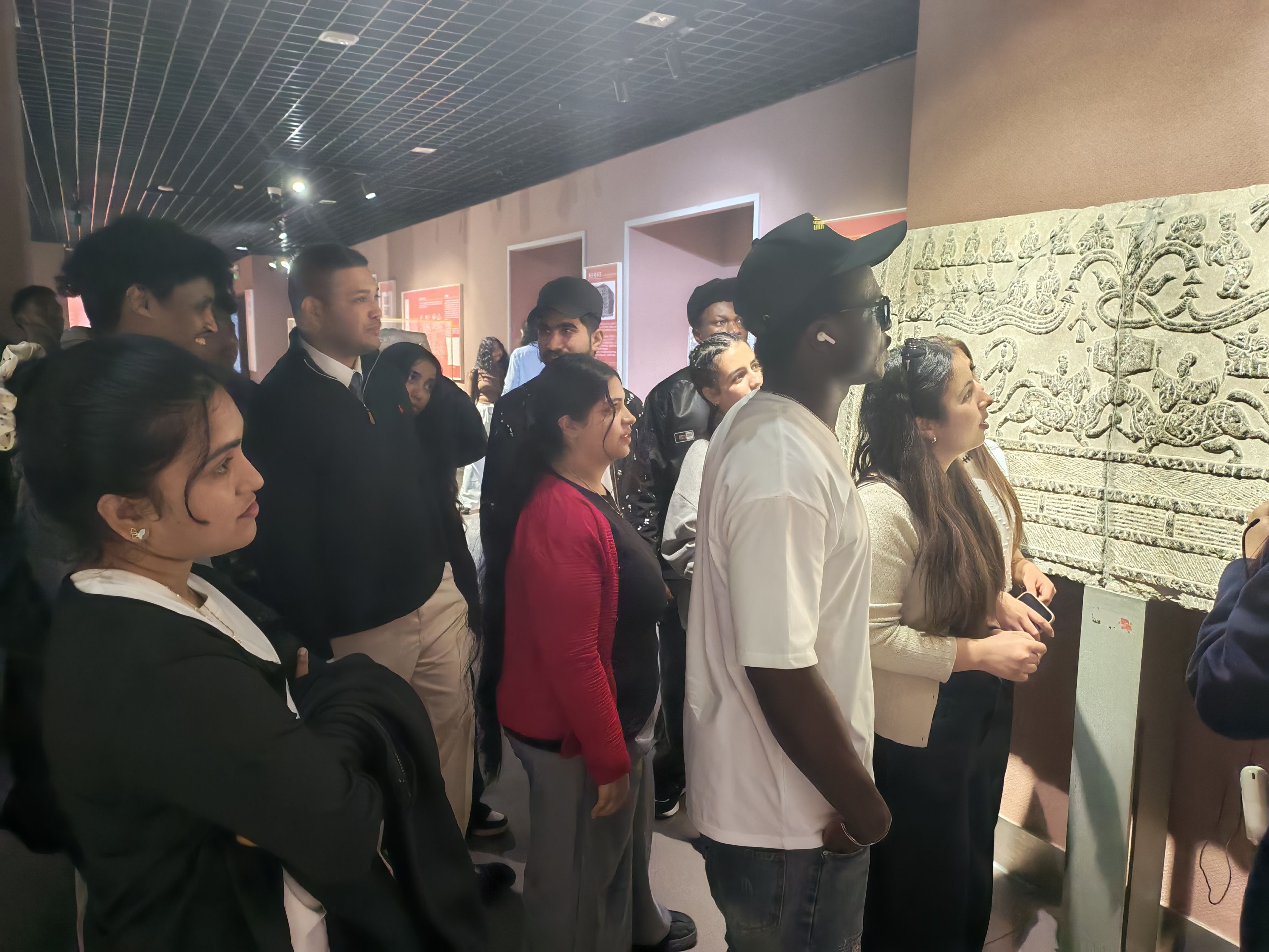 下午,研学团前往孟子故里邹城。在孟庙孟府景区,大家通过双语讲解,深入学习孟子“仁政”“民本”思想,了解孟母三迁等经典文化故事,并参与传统礼仪学习、儒学经典诵读等互动环节,在沉浸式体验中感受中华礼仪之美。随后,留学生们走进邹城博物馆,依次参观历史文化陈列、青铜器、陶器、石刻等珍贵文物,系统了解邹鲁文化的发展脉络,在沉浸式观展中感受中华文脉的源远流长。