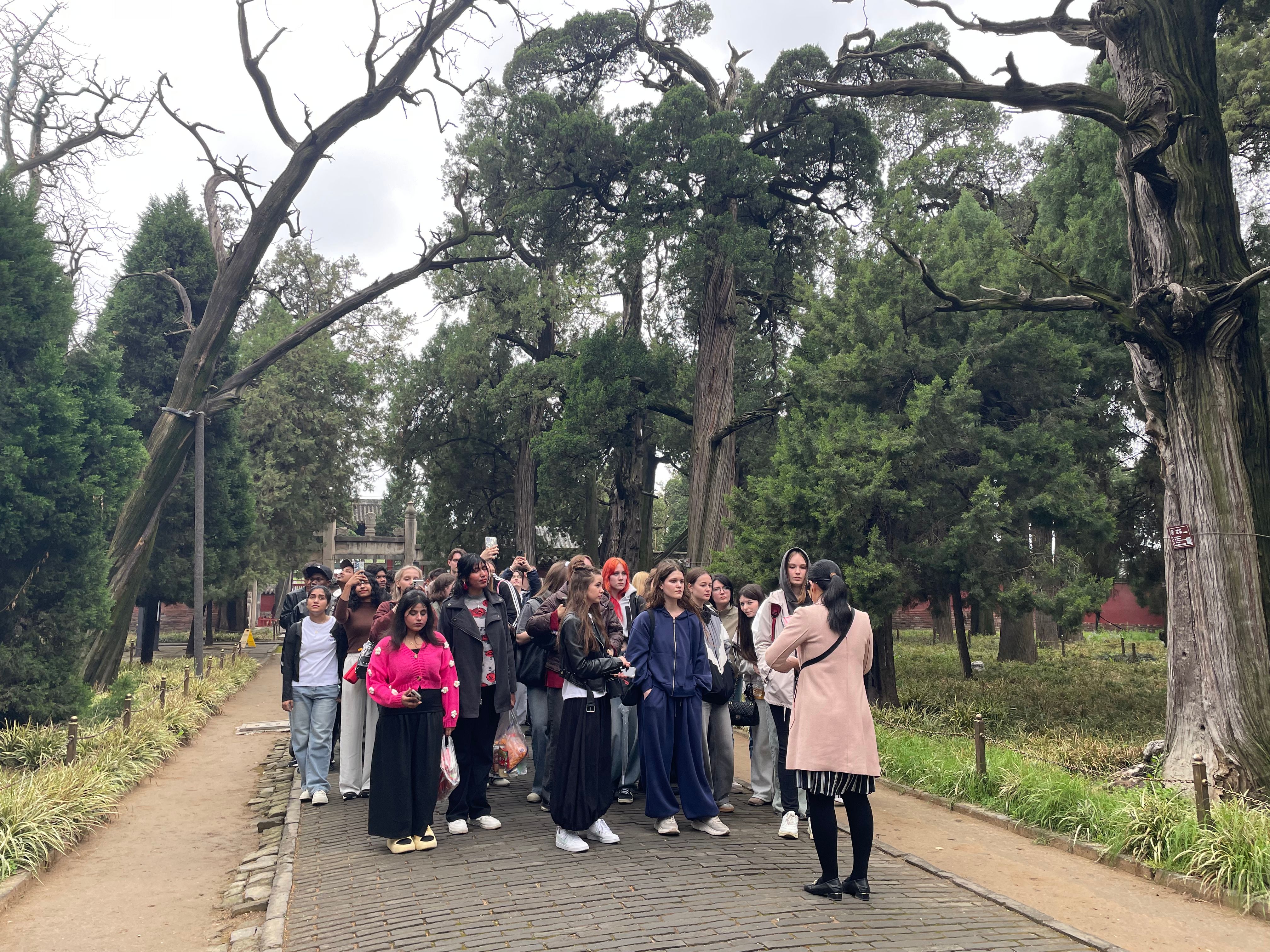 上午,研学团一行走进曲阜孔庙、孔府。在庄严肃穆的古建筑群中,留学生们认真聆听孔子儒家思想、礼乐文化与家风传承的讲解,细致观赏殿宇建制、古碑刻与历史遗存,深刻感受儒家文化“仁爱、礼义、中庸、诚信”的核心内涵,直观体会儒家文化的博大精深。
